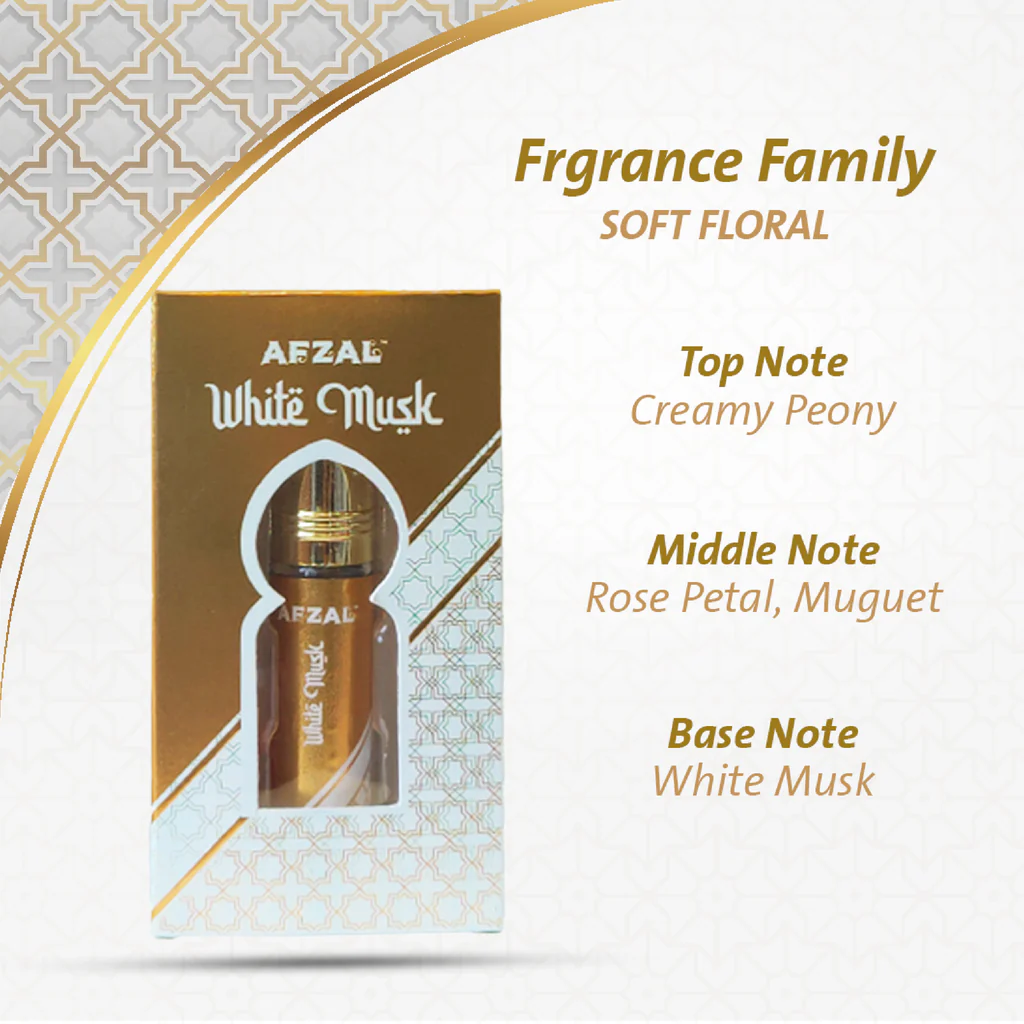 - If you’re looking for a premium quality attar that offers a perfect blend of soft floral and musky fragrance, Afzal White Musk Attar Roll-On is the perfect choice.